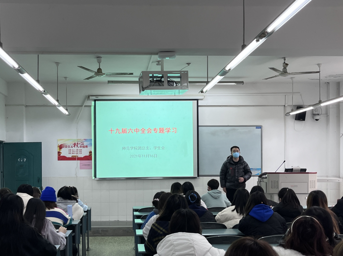 11月16日,qm球盟会网站团总支在青年路校区c202举行“十九届六中全会”专题学习会议。qm球盟会网站团总支书记蔡小龙、qm球盟会网站团总支、员工会主要干部及各班团支书参加会议。会议由蔡小龙主持。