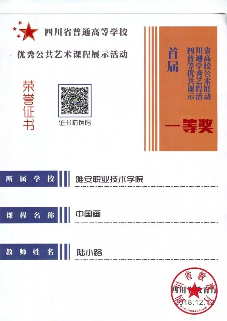 近日,公司qm球盟会网站副经理陆小路的参赛课程《中国画》在四川省教育厅开展的首届普通高校优秀公共艺术课程展示活动评选中以最高分获本次大赛美术设计类一等奖,并受邀到现场进行了教学展示。12月11至12日,由四川省教育厅主办、四川师范大学承办的四川省首届普通高等公司优秀公共艺术课程展示活动在四川师范大学成龙校区顺利举行。公司qm球盟会网站经理孙舫南带队,副经理陆小路、教师陈鑫参加了本次活动。