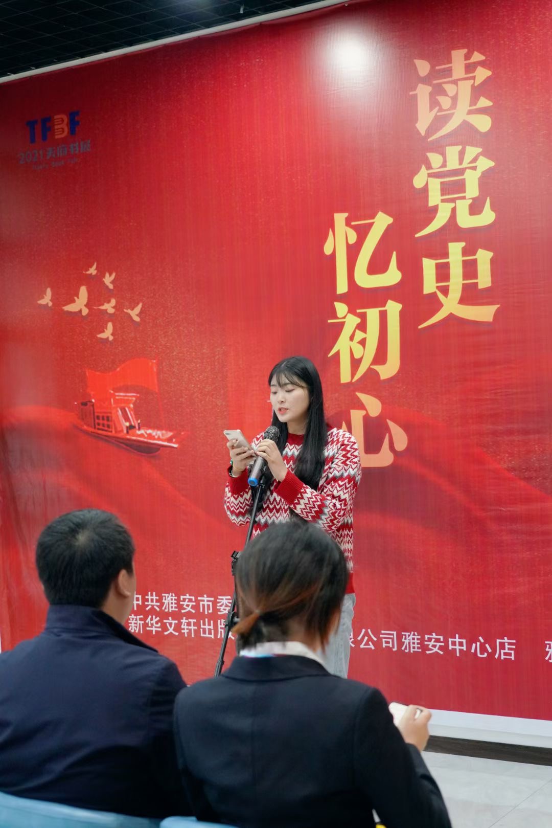 10月15日,qm球盟会网站团总支组织30名员工志愿者在新华文轩参加了由雅安市委宣传部主办的“读党史,忆初心”主题朗诵活动。