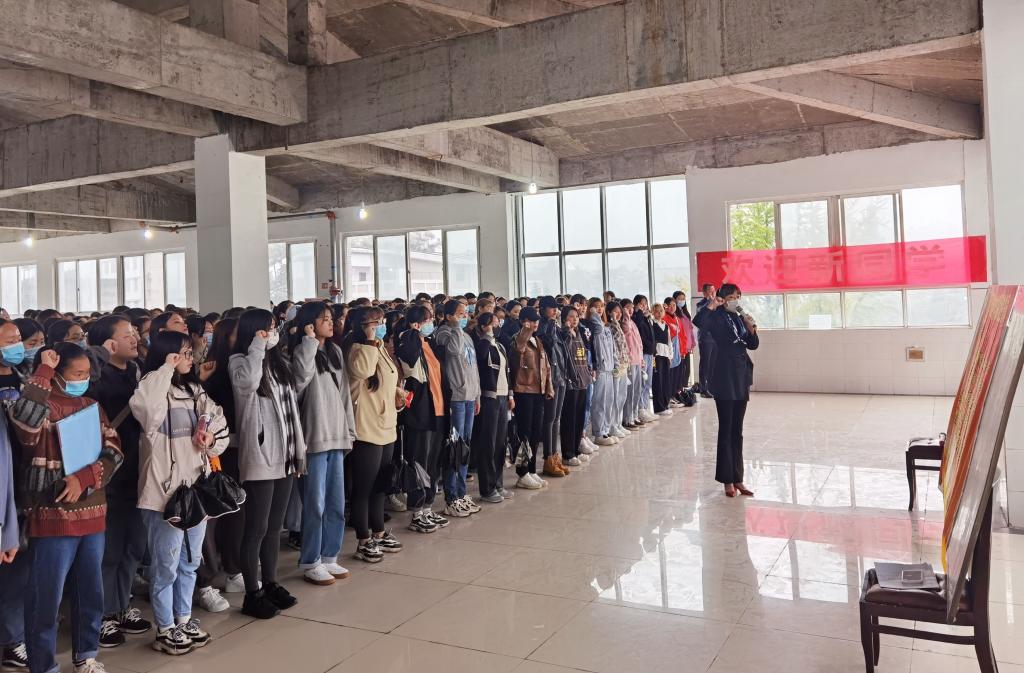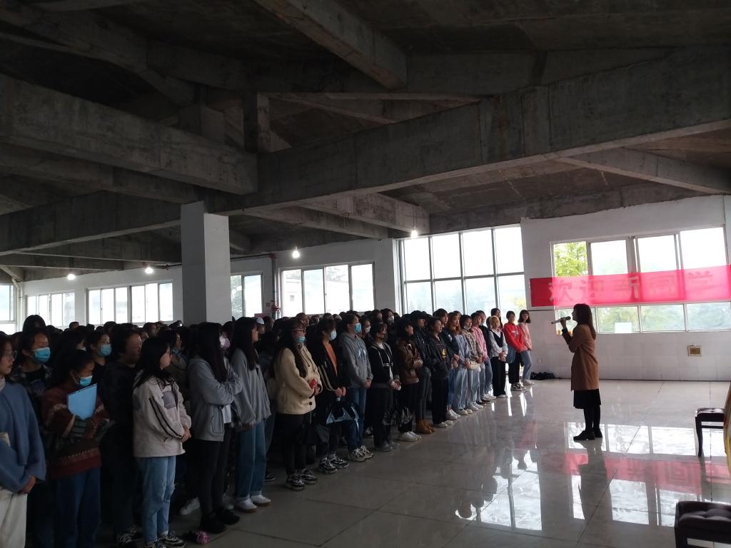 10月13日上午,qm球盟会网站在育才路校区舞蹈教室开展2020级新生入学教育。qm球盟会网站党政班子成员、团总支书记、员工管理干事、辅导员及2020级新生参加入学教育。