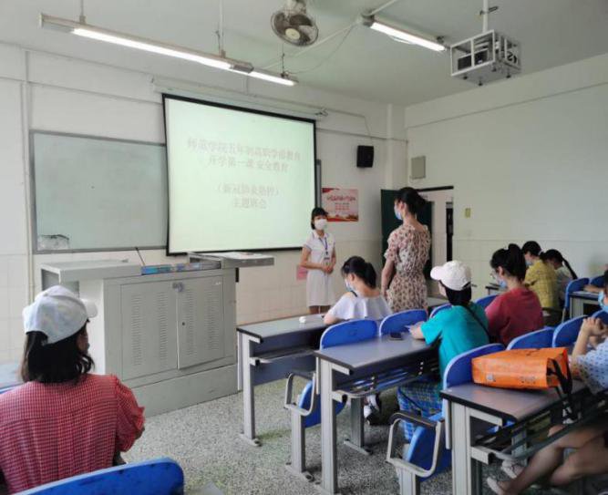 接下来由陆书记向同学们重点强调每天必须正确佩戴好口罩,就餐时一定遵守公司规章制度严格执行;有体温异常、发烧等不适情况马上报告班主任老师处,并且公司也为每个同学每周发放2个口罩,如有其他校园活动可以再行申请。然后陆书记让同学们谈谈疫情期间的感受,大家都畅所欲言,最后陆书记做总结:生命可贵,我们一定懂得珍惜,前方虽危险,却有人逆行而上,撑起一片天。让我们致敬逆行者!此次班会圆满结束。