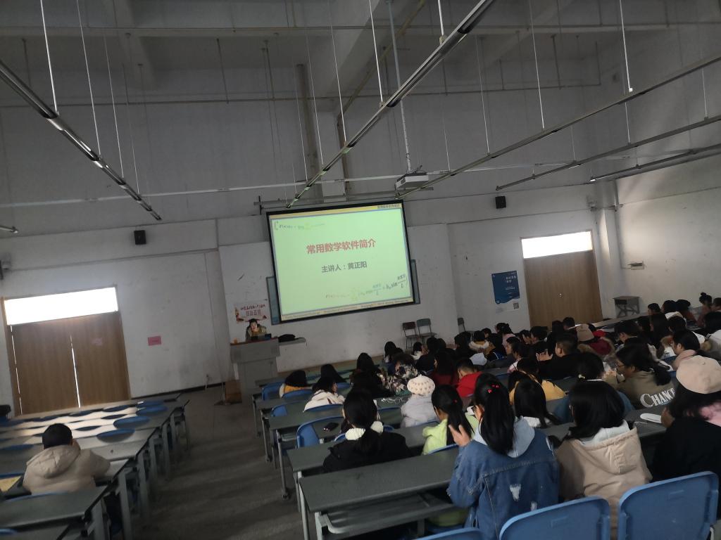 讲座上,黄正阳老师首先介绍了常用数学类科技应用软件;接着具体讲解了Matlab可以做什么,它的发展过程、特点、应用实例,及其在数学建模竞赛中的作用;最后,详细解答了同学们提出的问题。