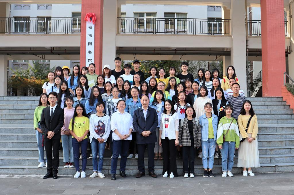 首先,由主持人致词,宣布讲座正式开始,同学们以热烈的掌声欢迎三位嘉宾的到来;紧接着为同学们播放了一个熊猫纪录片,为同学们揭开了大熊猫那神秘的面纱;随后,瀚文文学社为同学们带来了关于熊猫的诗词朗诵,将同学们的热情推向了高潮;最后罗会长为同学们讲解了三种“熊猫”,分别是生物熊猫、文化熊猫、经济熊猫。讲诉了世界上第一只大熊猫于1862年被法国神父戴维所发现,在改革开放初期,熊猫作为我国与外国外交上的一座枢纽,为我国外交事业做了巨大贡献。活动即将结束时罗会长为同学们解答与熊猫有关的问题,使同学们更加深入的了解到了熊猫这个物种。随后,嘉宾以及同学们到图书楼门前合影留念。