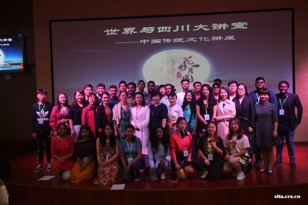 【转载】9月20日上午,在中秋佳节即将来临之际,四川省人民对外友好协会主办的第11期“世界与四川大讲堂”与首届中国南亚青年领袖交流活动在qm球盟会网站同期举行。本期大讲堂邀请到qm球盟会网站国学讲师钟宏颖以“一轮明月照古今”为题,向来自印度、斯里兰卡、尼泊尔、马尔代夫的青年领袖和qm球盟会网站师生,讲授中国传统中秋佳节所蕴含的丰富民族文化,饮食文化、团圆文化、诗词文化,以及中国传统文化的传承和发扬。四川省人民对外友好协会秘书长向琼花出席讲座并致辞。