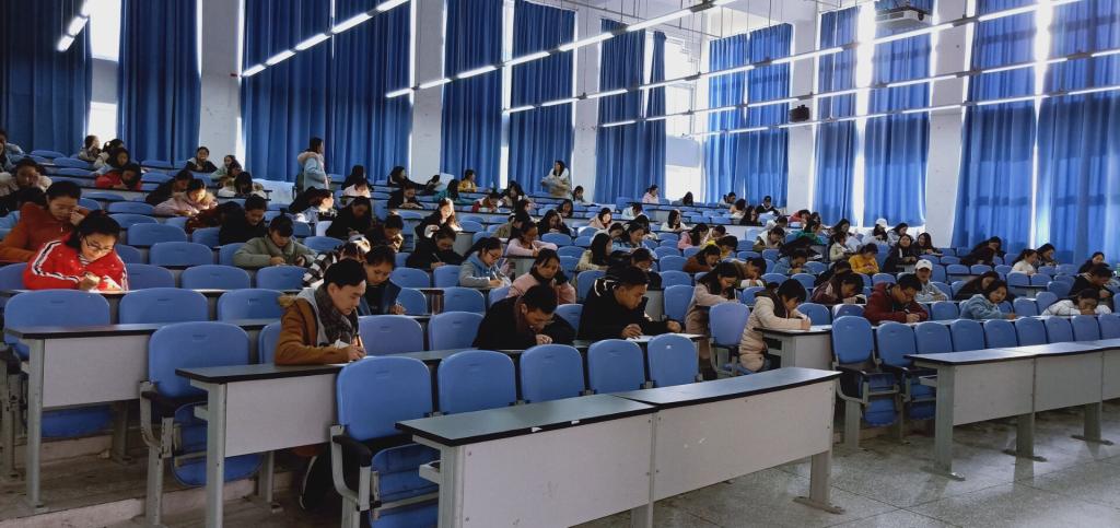首先,学前教育和特殊教育的同学们有序进入教室到班长处签到。签到结束,同学们积极配合按监考同学的要求做到了相应的位置上。随后监考同学把试卷分发给了竞赛同学们,四点十分准时开始答卷。在活动过程中2017级的同学们认真读题和思索,回想老师的讲解和书本的内容,利用自己所学的专业知识,写下了自己的答案。最后,同学们完成自己的试卷交由监考同学处,结束了此次活动。
